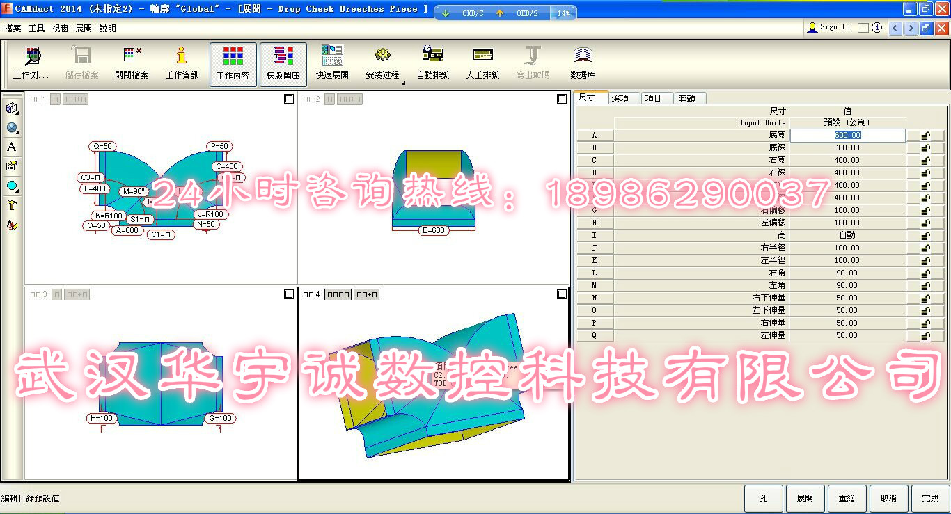武漢華宇誠數控生產的風管等離子切割機,針對風管展開切割進行了專門優化。切割速度更快、切割精度更高、切割效果更好。并搭配專門的風管展開軟件,用戶只需選擇要切割的風管類型,輸入相應尺寸參數,便可自動排料、自動生成加工程序,用戶直接用U盤在切割機上調入加工程序切割即可。 適合材料有:不銹鋼板、碳鋼板、鋁板、銅板、鍍鋅板、白鐵皮、合金板等多種板材材料,一應俱全!高速等離子切割,切割效果為激光下限!