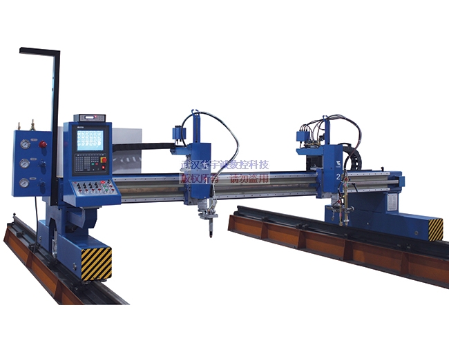 外形如圖所示。該型切割機為龍門式結構,橫向跨度有3m、4m、5m、6m、8m等多種規(guī)格,均采用雙邊驅動,運行穩(wěn)定,配置好,工作效率高,可用于各種碳鋼、錳鋼、不銹鋼等金屬材料的大、中、小型鋼板下料。還可根據(jù)用戶要求配置多把割炬,或配置成異型切割和直條切割兩用切割方式,另可選配電容或等離子自動調高系統(tǒng);基本配置:為單火焰或單等離子割炬,帶自動點火,不含自動調高及等離子切割電源。