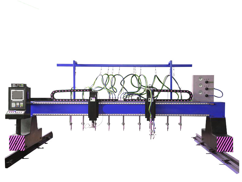 CNC-CG-4000數(shù)控多頭直條火焰切割機是我廠在吸收國內(nèi)外先進軟硬件技術(shù),為配套金屬結(jié)構(gòu)件加工而自行研制和開發(fā)的一種高效率自動切割下料設(shè)備,可縱向和橫向直線切割,也可圓弧曲線的平面幾何圖形切割,切割表面粗糙度及精度要求高,變形小,9組直條割炬可以同時切割,這樣板材不變形同時又提高了生產(chǎn)效率。該機具有結(jié)構(gòu)合理,操作簡單,工藝先進等優(yōu)點。